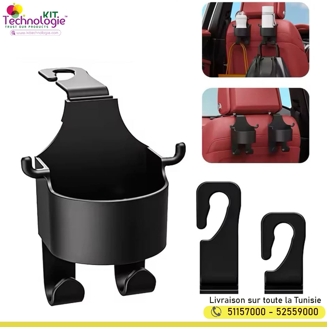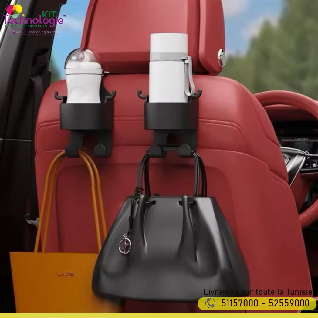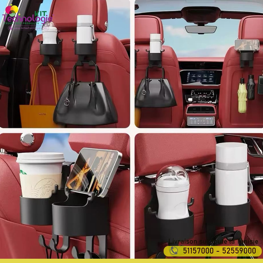 Crochet de repos pour siège de voiture avec porte gobelet pour sac à main, support de stockage de suspension, accessoires de véhicule universels