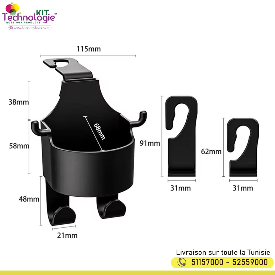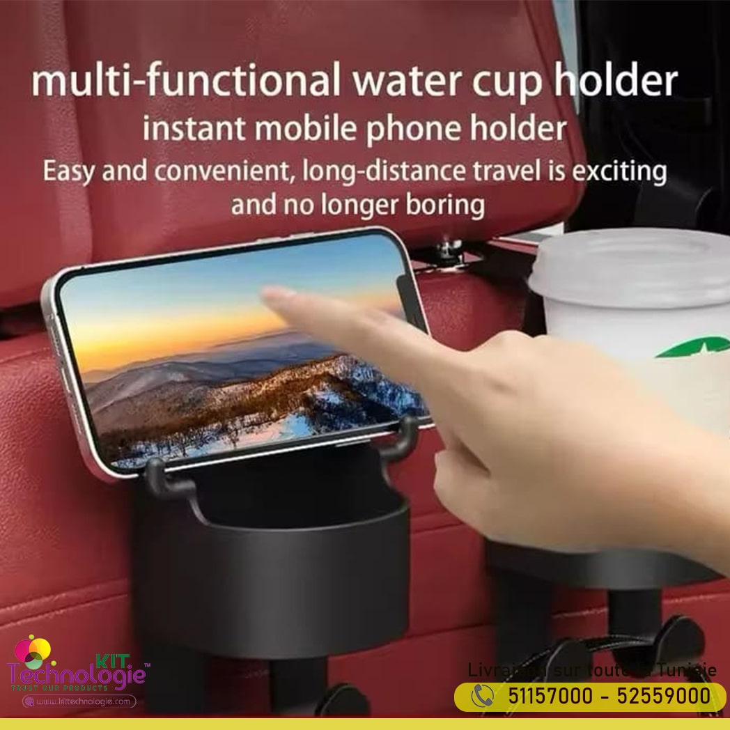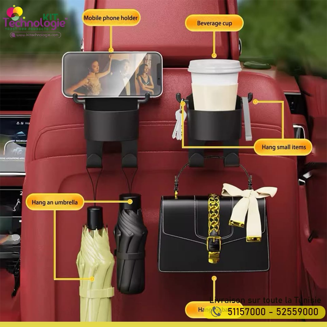 Crochet de repos pour siège de voiture avec porte gobelet pour sac à main, support de stockage de suspension, accessoires de véhicule universels