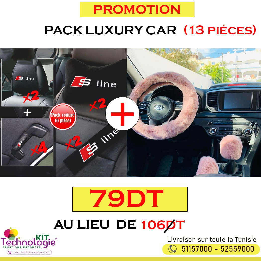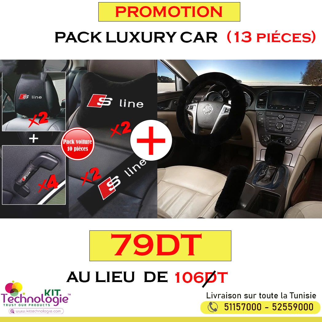 Kit Fourrure 3pcs(Cache Volant +Boite Vitesse + Frein à Main) + Ensemble d’Accessoire intérieur auto 10pcs