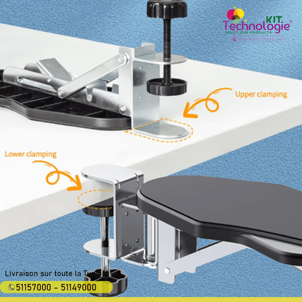 -Avec une structure simple et une conception d'installation sans poinçon, l'accoudoir d'ordinateur peut être installé facilement et commodément sur le bureau.