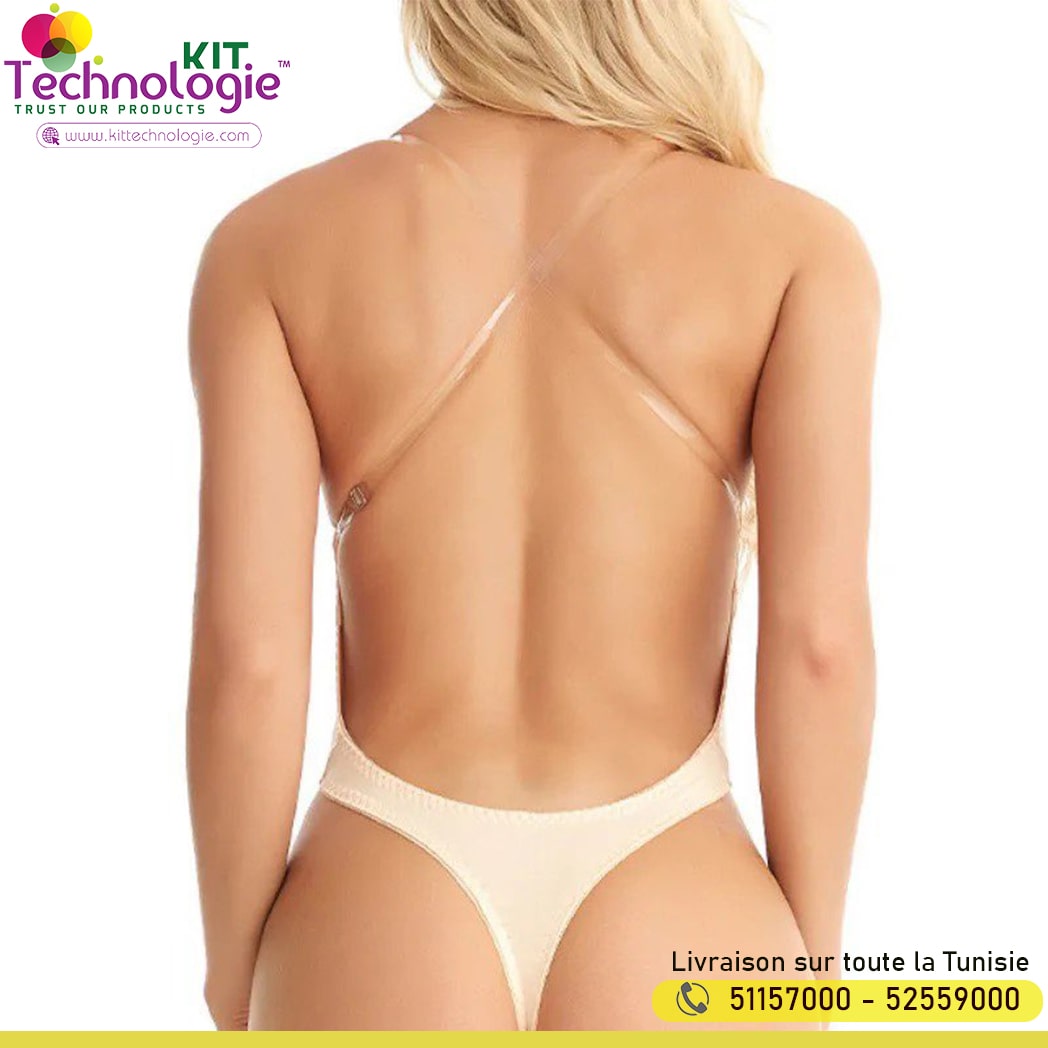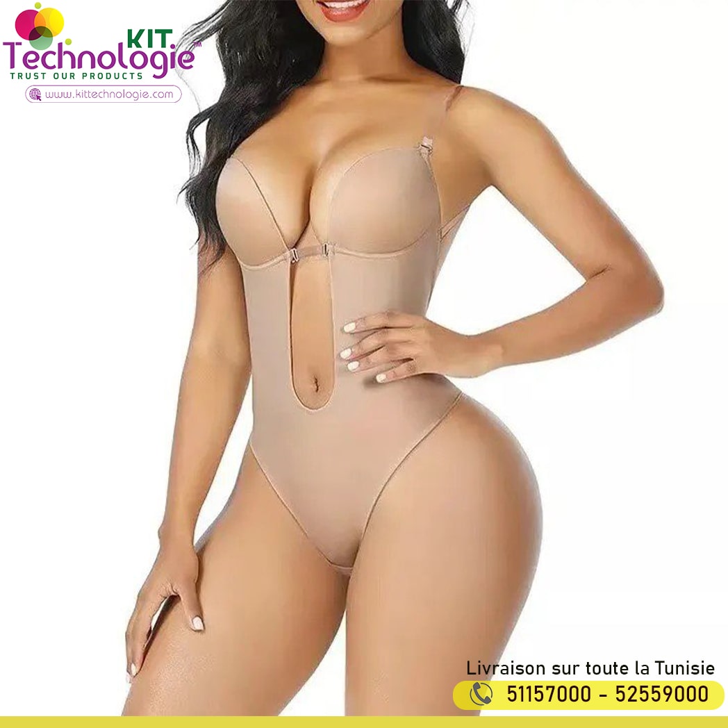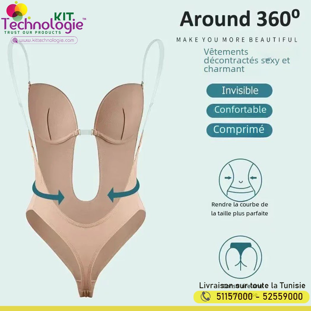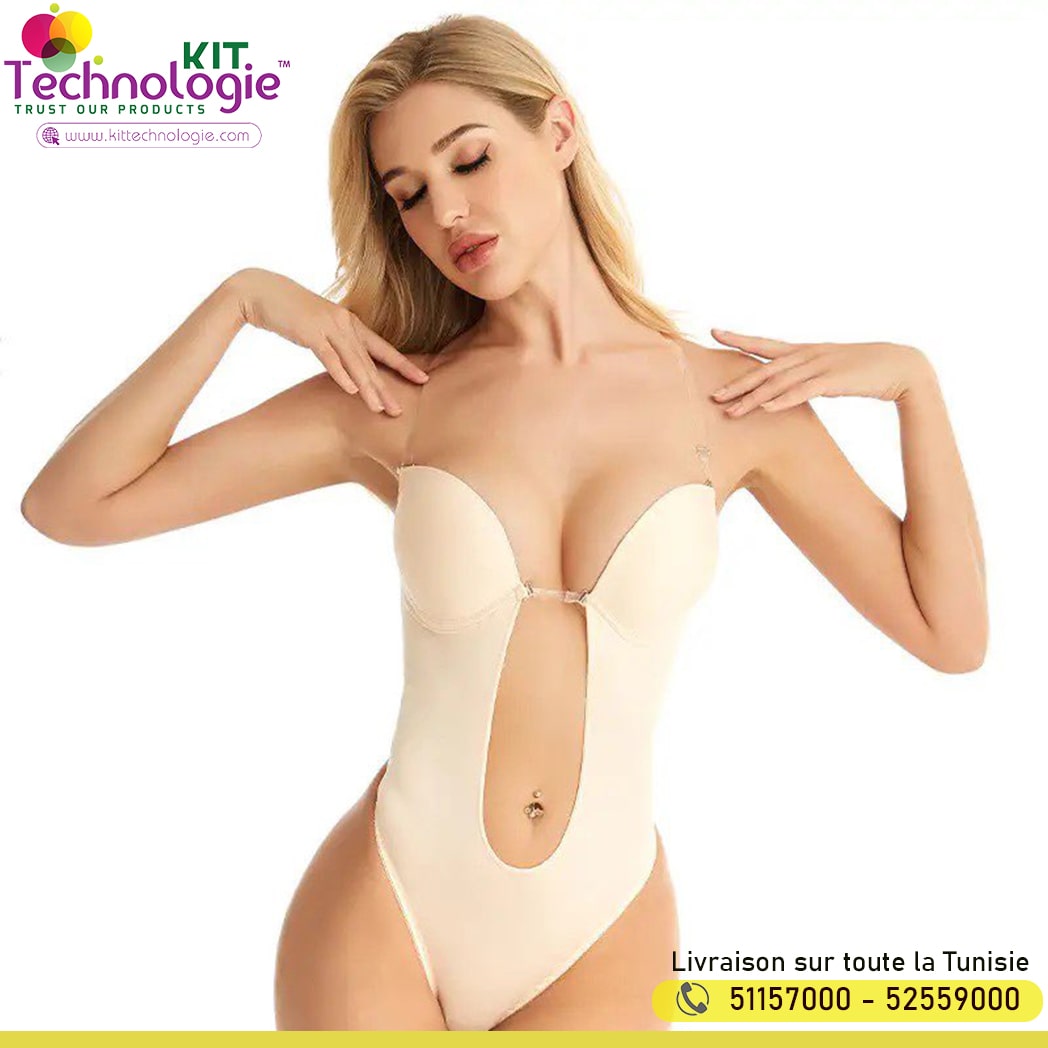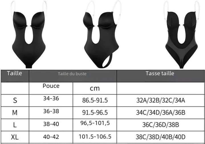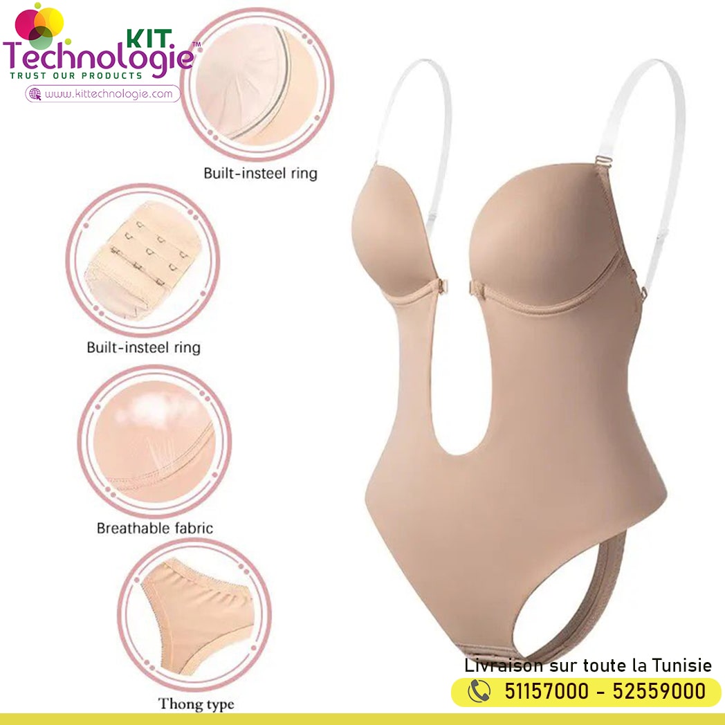 Lingerie dos nu pour femmes, décolleté en V profond, ceinture transparente, plongeante en forme de U, Corset Push-Up rembourré