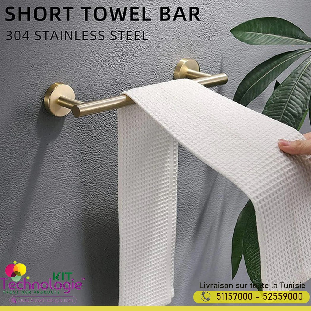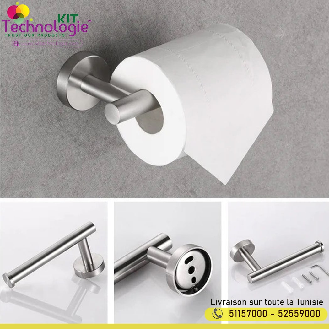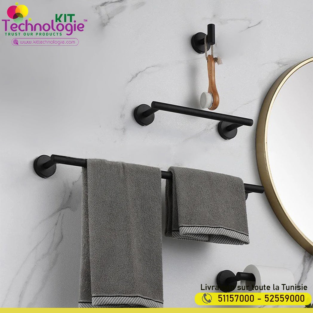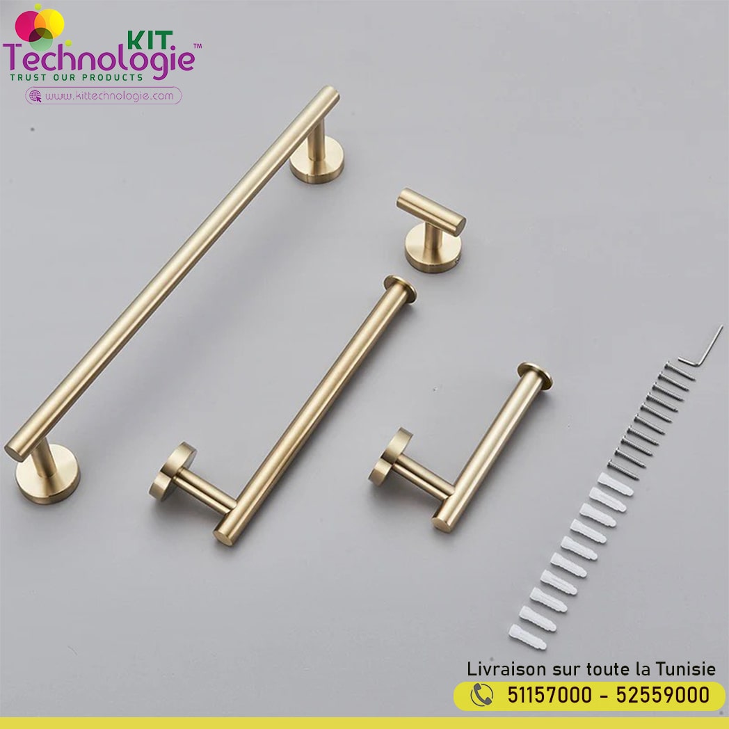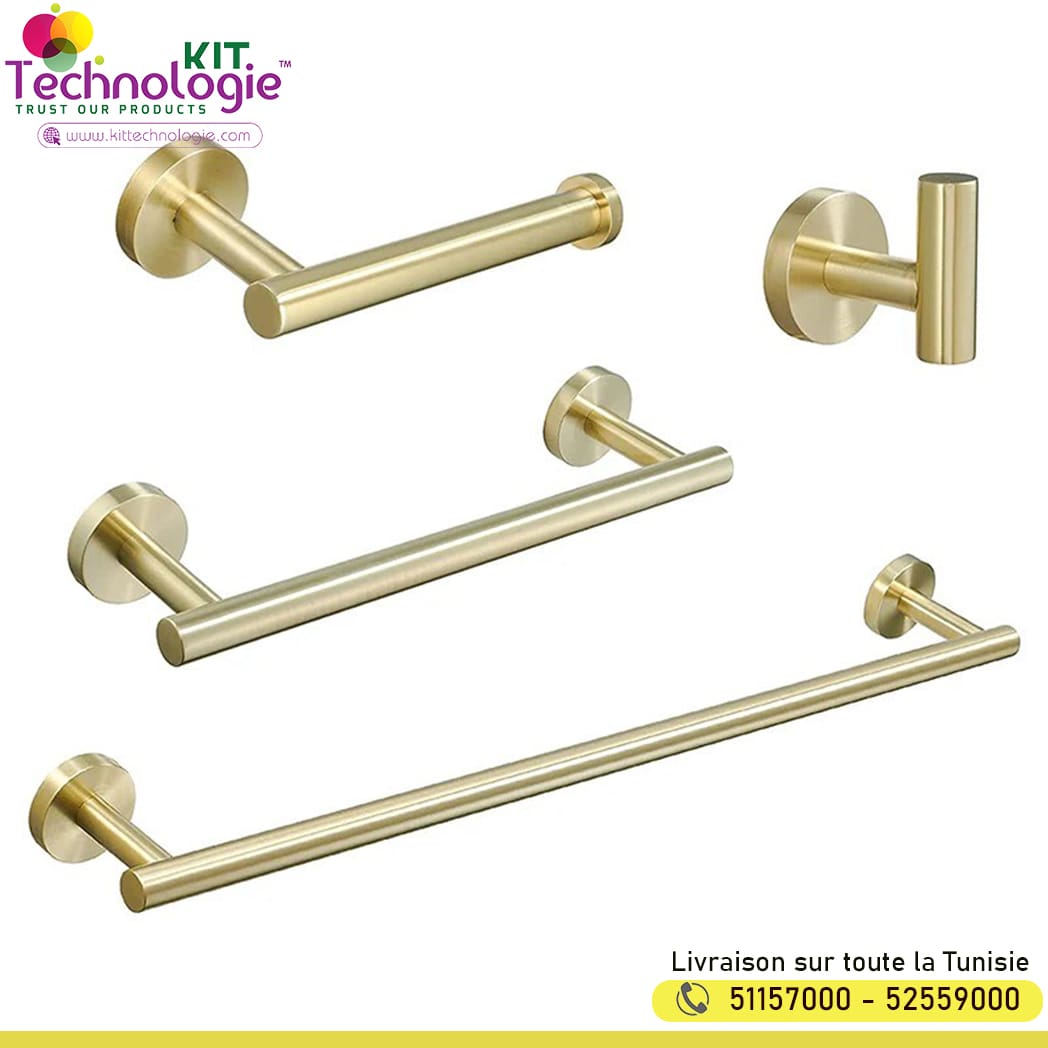 - Lot de 4 : 1 barre porte-serviette , 1 barre porte-serviette, 1 support de rouleau de papier toilette, 1 crochet pour peignoir.