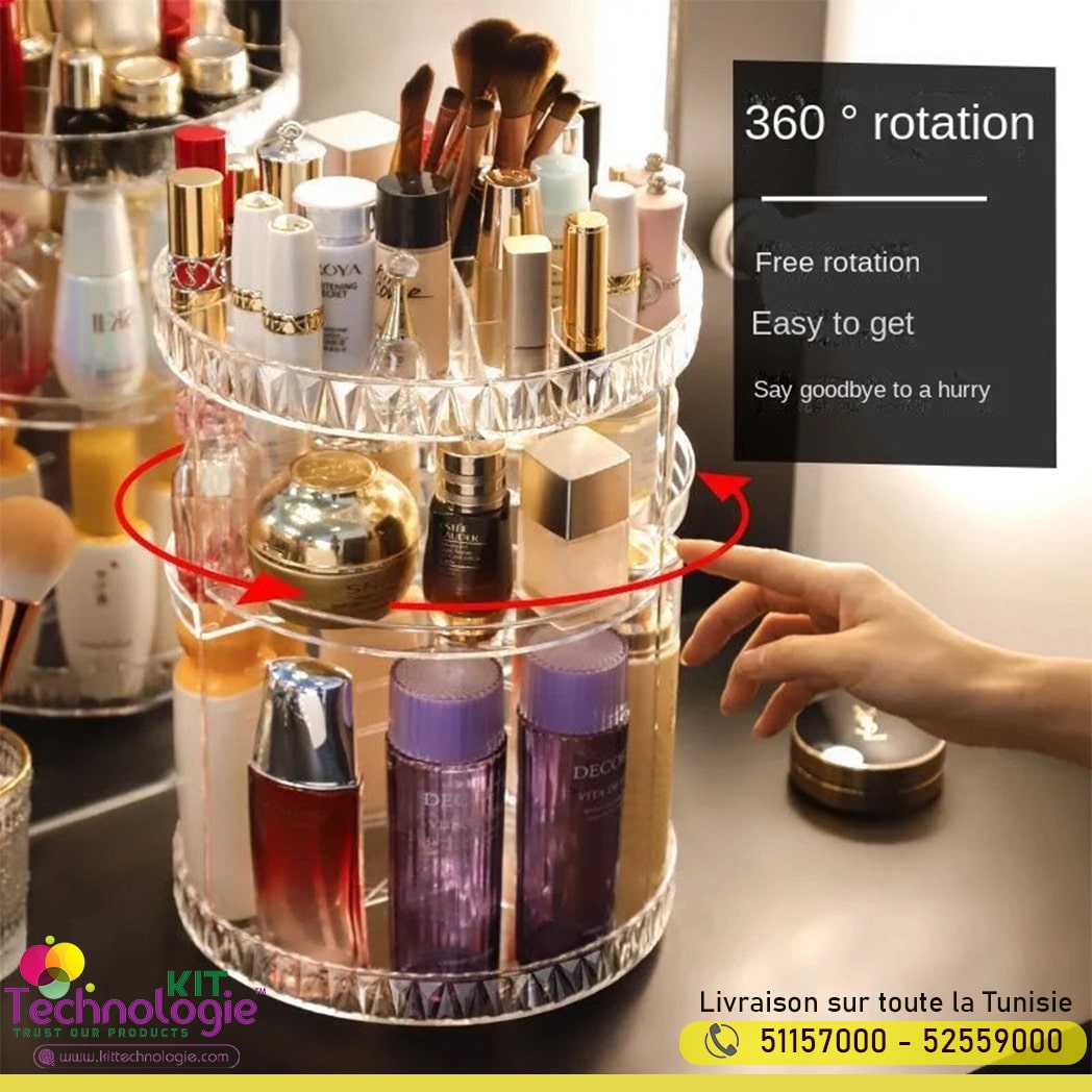 Organisateur de maquillage rotatif à 360° , boîte de rangement cosmétique de grande capacité, convient aux pinceaux de maquillage, Eyeliner, vernis à ongles de rouge à lèvres