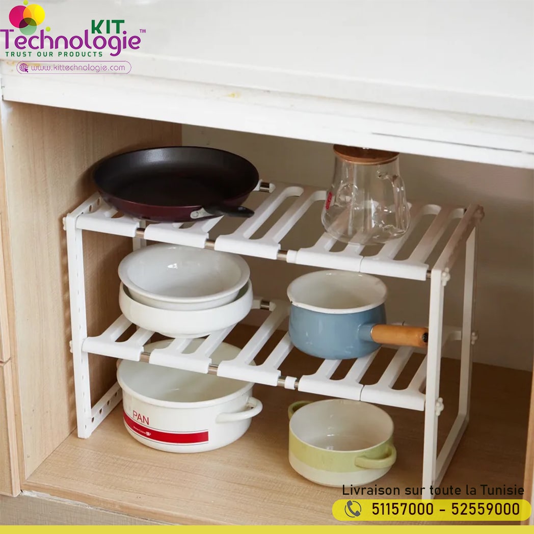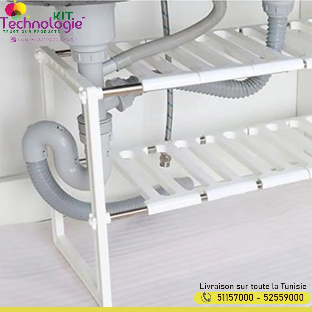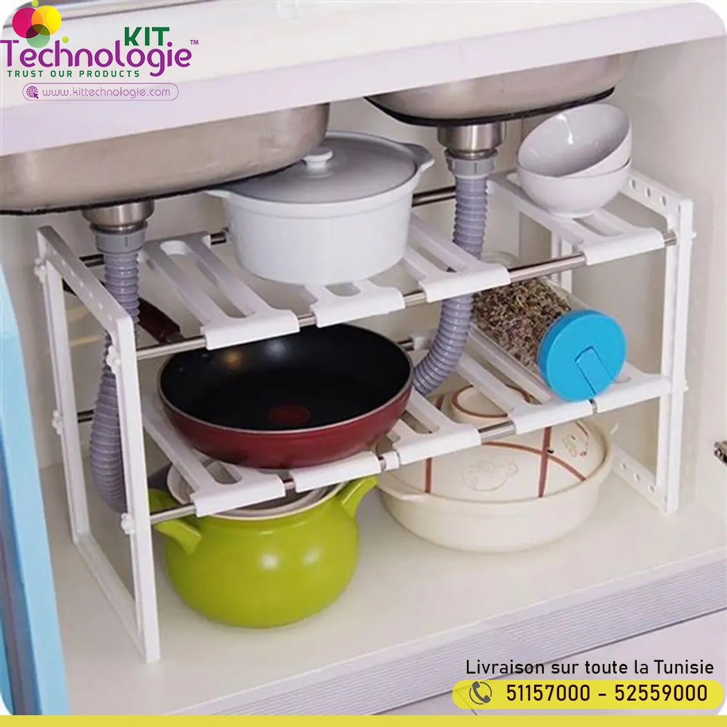 Etagère de rangement extensible en acier inoxydable, pour la cuisine, sous l'évier ( armoire à 2 niveaux )