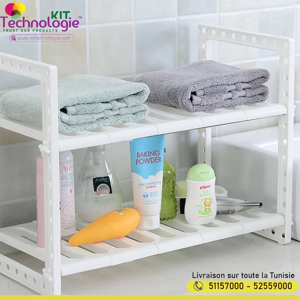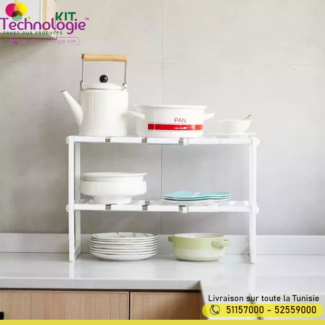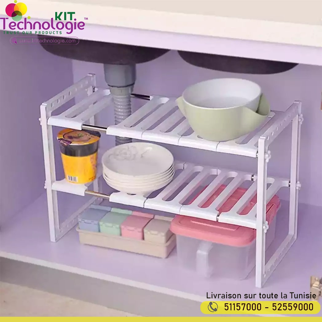 Etagère de rangement extensible en acier inoxydable, pour la cuisine, sous l'évier ( armoire à 2 niveaux )