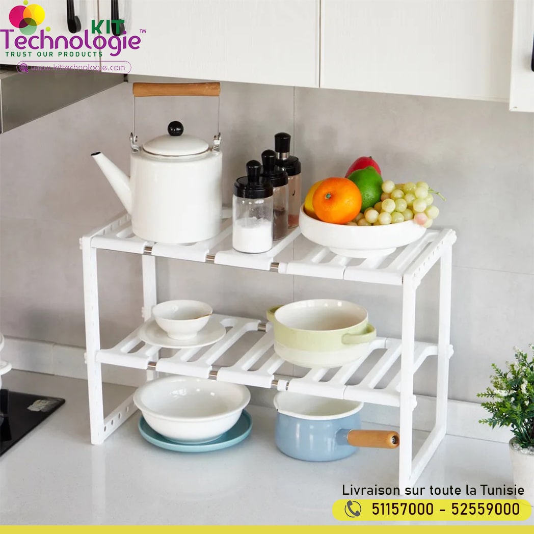 Etagère de rangement extensible en acier inoxydable, pour la cuisine, sous l’évier ( armoire à 2 niveaux )