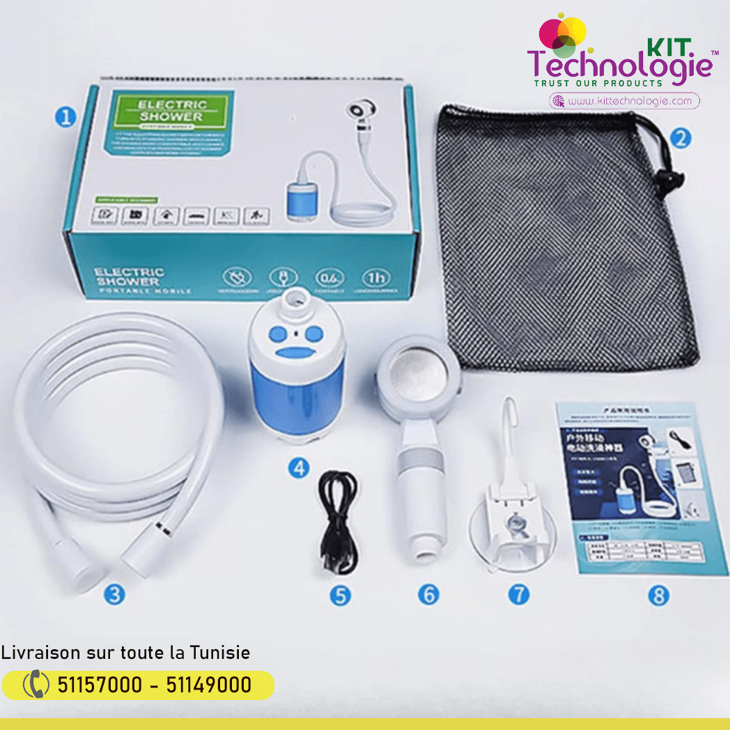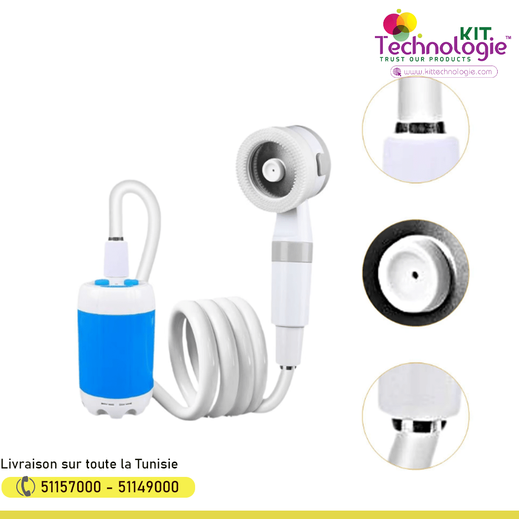 Contenu de l'emballage complet : ce kit de douche portable comprend 1 boîte d'emballage, 1 sac de rangement, 1 tuyau en PVC, 1 pompe à eau, 1 câble USB, 1 pomme de douche, 1 support de pomme de douche, 1 manuel d'utilisation.