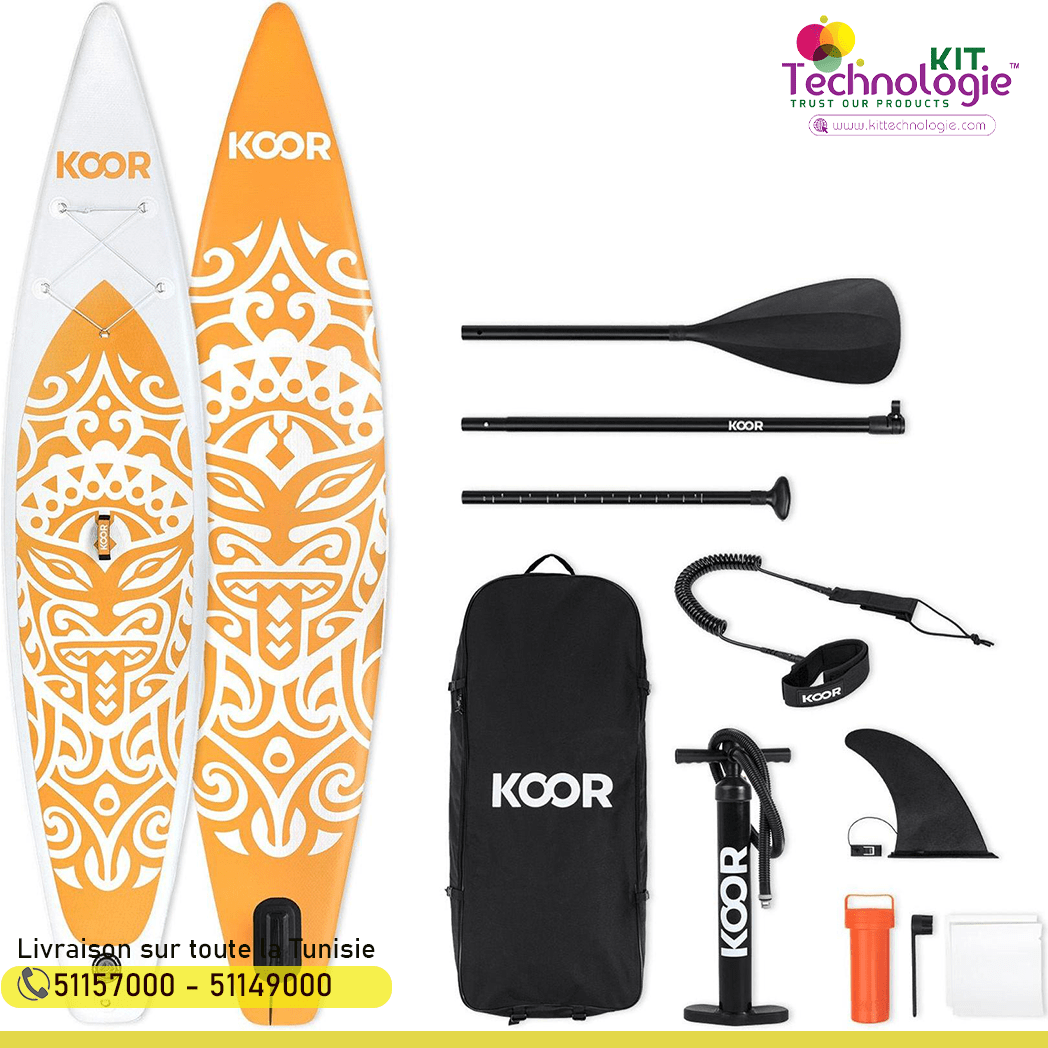 Avec la planche de stand-up paddle Moolaka de KOOR, vous êtes parfaitement équipé pour votre prochaine sortie sur l'eau. Grâce à la technologie Double-Layer-Drop-Stitch, la planche est légère, robuste et indéformable. Sa construction fine et aérodynamique vous permet d'avancer à un rythme effréné, même sur de longues distances. Grâce à son design inspiré des masques des dieux balinais, la planche attire tous les regards. Un sac de transport, une pagaie réglable, une corde et une pompe complètent l'ensemble.