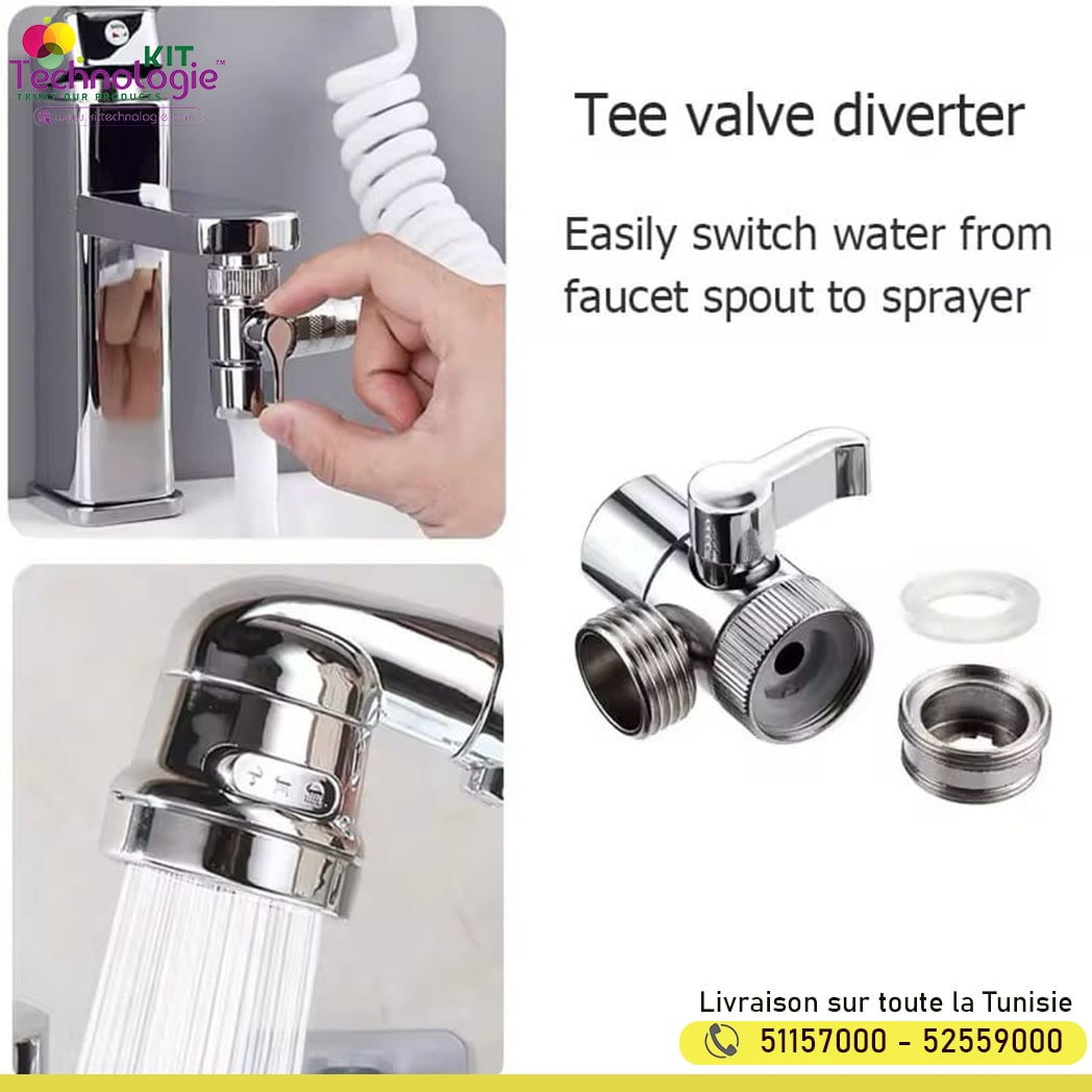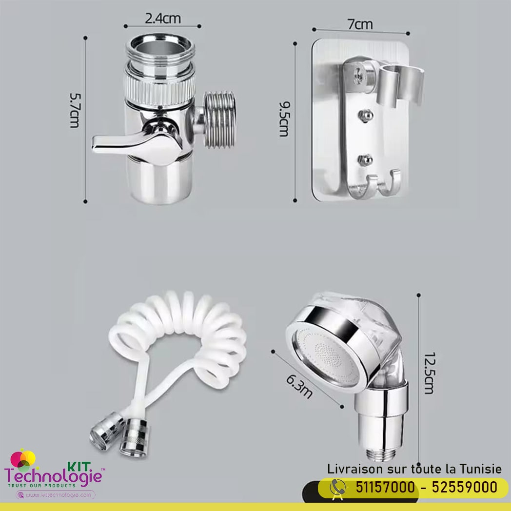 Pommeau de douche * 1 et tuyau * 1 et vanne de dérivation d'eau * 1 et support de montage * 1