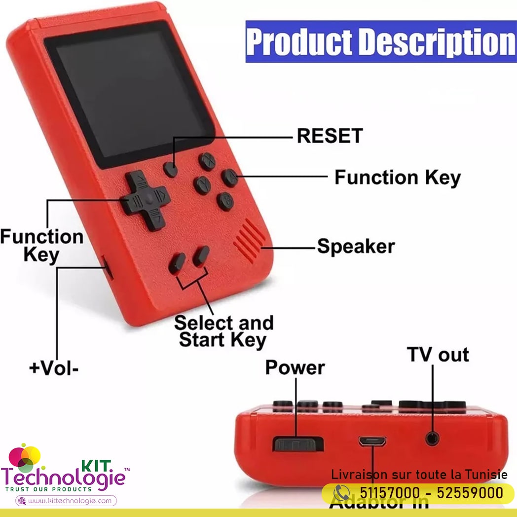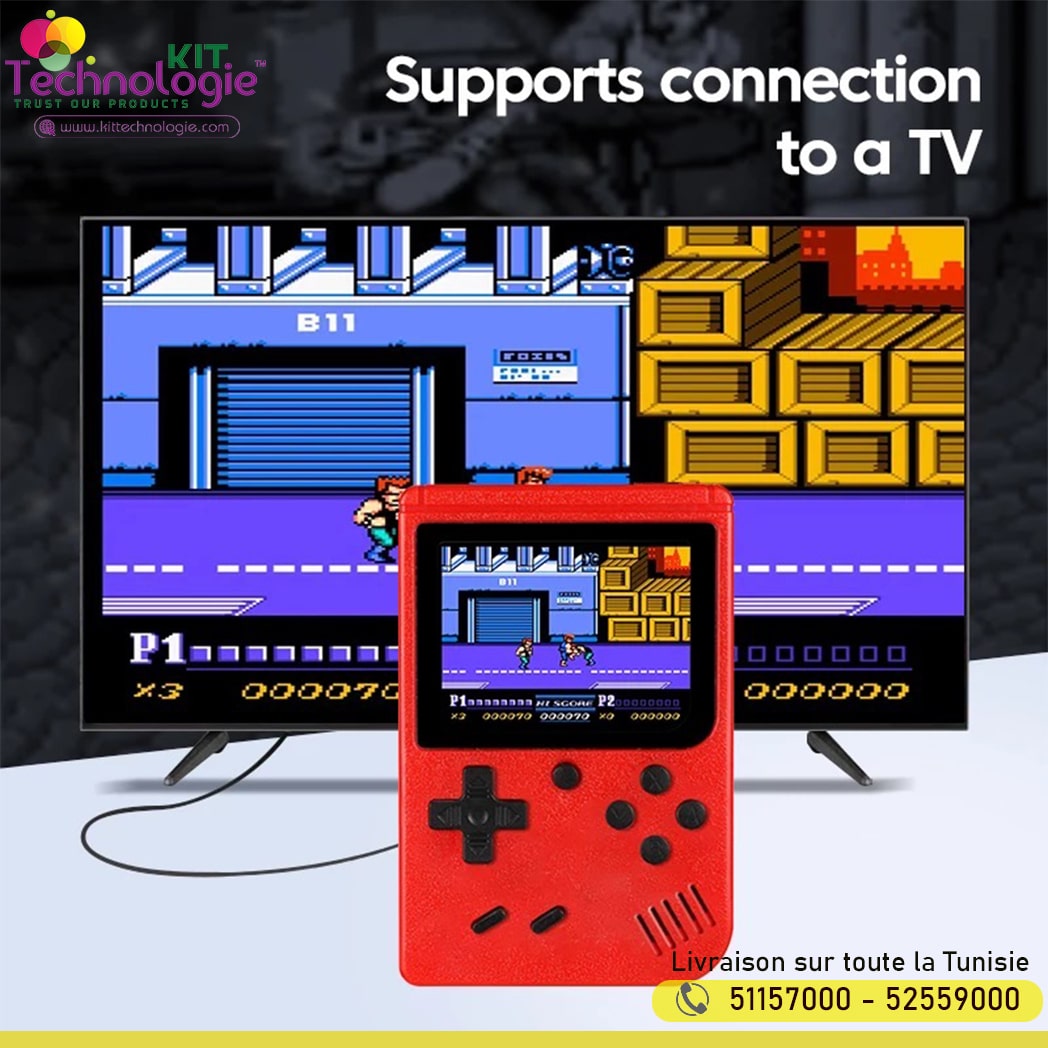 Avec 400 jeux intégrés, vous ne vous ennuierez plus jamais ! De plus, cette console prend également en charge la sortie TV, ce qui vous permet de profiter de vos jeux sur grand écran.