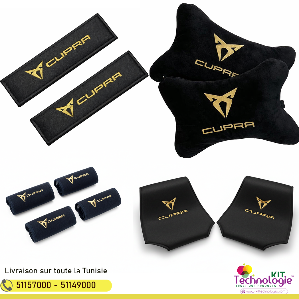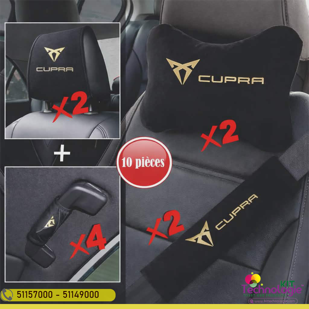 2 coussins de siège+2 appui tète+ 2 pack rembourrage ceinture de sécurité + 4 pack rembourrage supports divers.